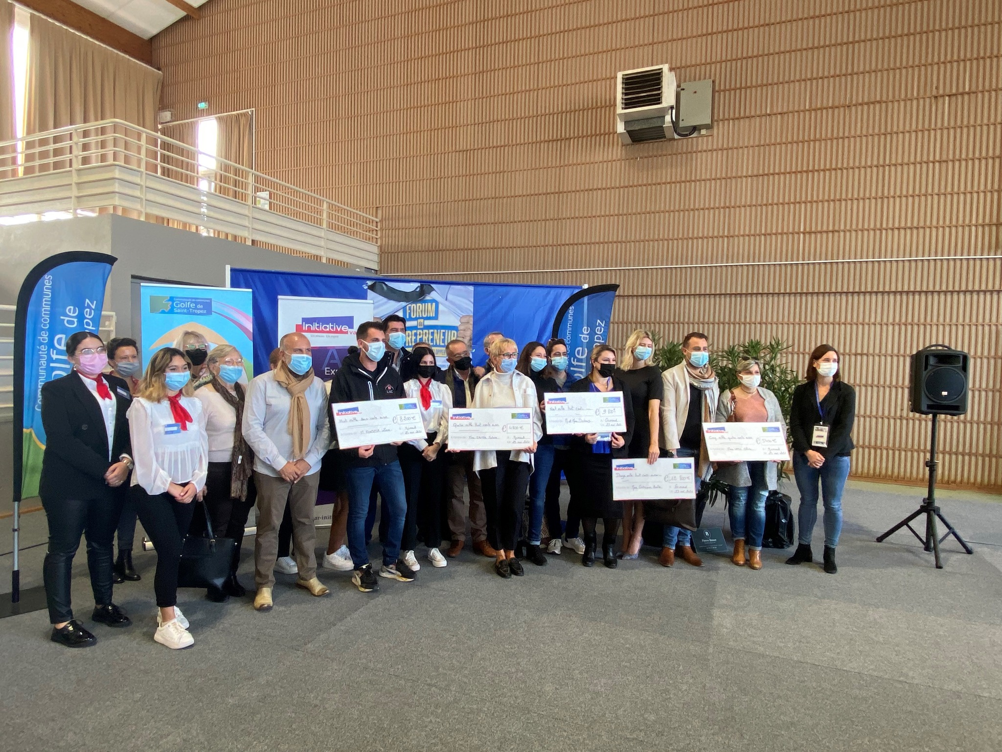 Le mardi 23 novembre 2021, s'est tenue la 3ème édition du forum de l'entrepreneur à Grimaud. A cette occasion, cinq chefs d'entreprise ayant récemment bénéficié d'un prêt à taux zéro Initiative Var se sont vus remettre un chèque honorifique en présence d'Alain BENEDETTO, Vice Président de la Communauté de Communes du Golfe de Saint Tropez, Justine CATANI, Directrice d'Initiative Var, et d'élus locaux.